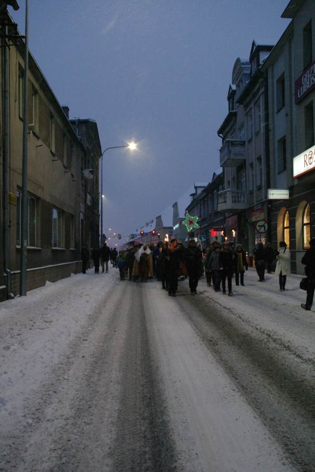 Wspaniały pokaz tańca z ogniem zaprezentował zespół Bombastic z Bukowca, po którym barwny orszak wyruszył ulicami miasta, by dotrzeć do szopki w kościele pw. św. Jana Chrzciciela. Tam, trzej królowie pokłonili się Dziecięciu i złożyli dary. Zwieńczeniem świątecznego orszaku była uroczysta msza św., którą poprowadził biskup pomocniczy senior diecezji zielonogórsko-gorzowskiej Paweł Socha.