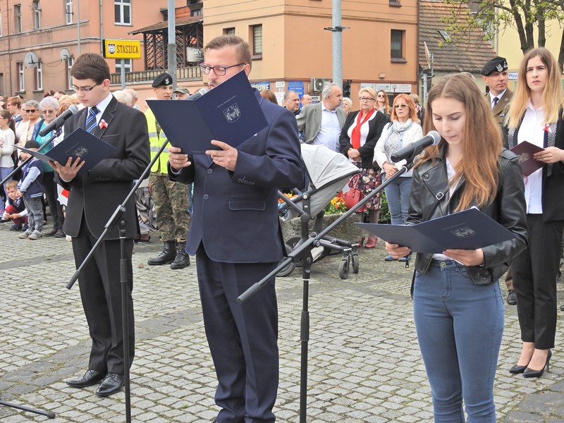 W 227. rocznicę uchwalenia Konstytucji 3 Maja burmistrz Remigiusz Lorenz, zastępca burmistrza Agnieszka Śnieg oraz sekretarz gminy Anna Sawka wraz z radnymi Rady Miejskiej, przedstawicielami zakładów pracy, organizacji, instytucji, szkół oraz mieszkańcami uczestniczyli w obchodach, które tradycyjnie rozpoczęły się uroczystą mszą św. w kościele pw. Św. Wojciecha. Następnie ulicami miasta przeszedł pochód patriotyczny pod pomnik 1000-lecia Państwa Polskiego, gdzie odbył się ceremoniał wojskowy oraz złożone zostały kwiaty. Burmistrz wraz z radnymi Młodzieżowej Rady Miejskiej odczytał przemówienie i na zakończenie podziękował uczestnikom oraz wszystkim, którzy przyczynili się do organizacji obchodów.