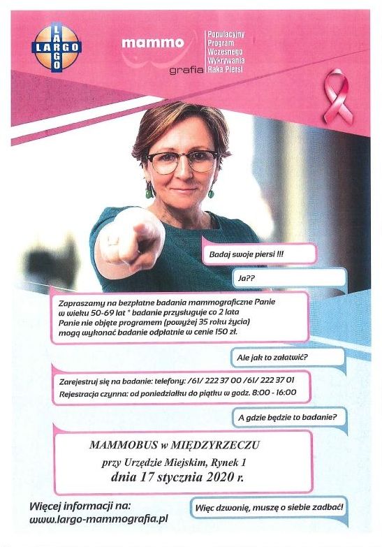 Zapraszamy panie na badania mammograficzne, które odbędą się 17 stycznia br.