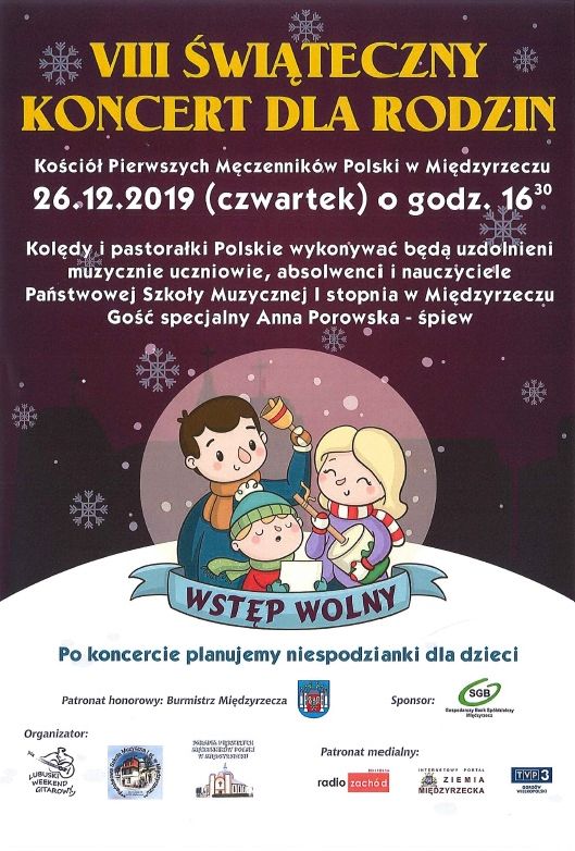 Zapraszamy na VIII Świąteczny Koncert dla Rodzin, który odbędzie się 26 grudnia o godz. 16.30 w kościele-sanktuarium Pierwszych Męczenników Polski.