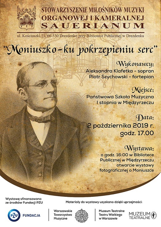 W środę 2 października o godz. 16:00 w bibliotece otwarta zostanie wystawa fotograficzna o Stanisławie Moniuszce, natomiast o godz. 17:00 w Szkole Muzycznej będziecie mogli wysłuchać koncertu "Moniuszko-ku pokrzepieniu serc". Wstęp wolny. Serdecznie zapraszamy!