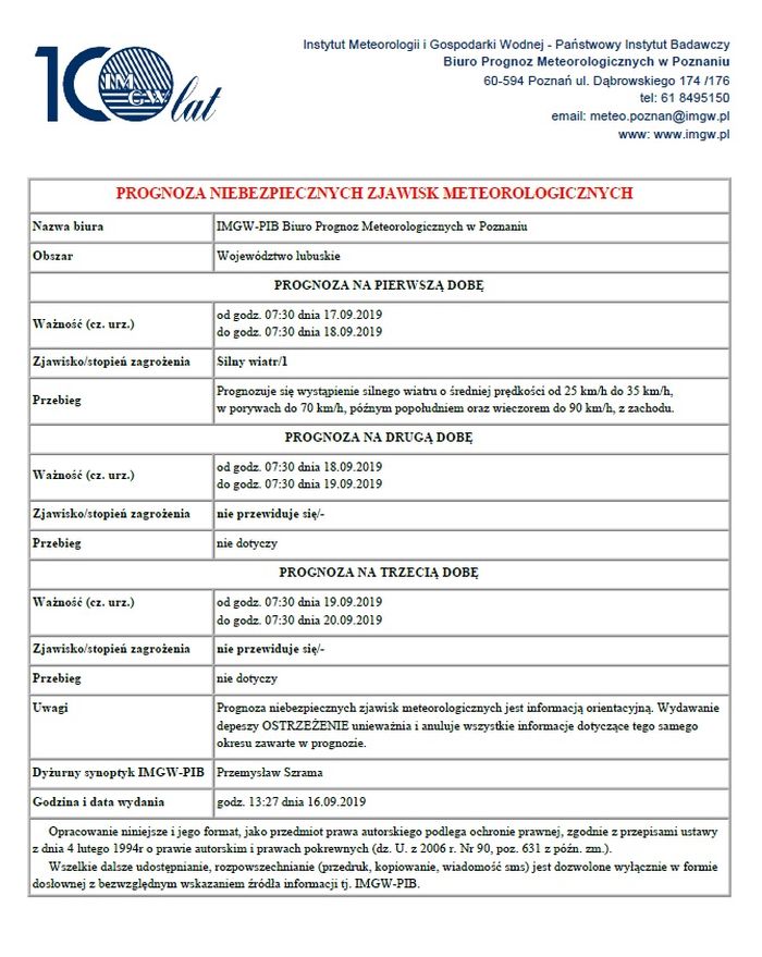 Uwaga! Ostrzeżenie przed silnym wiatrem