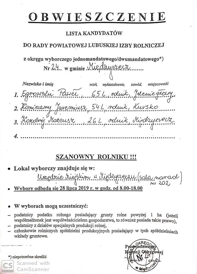 Wybory do Rady Powiatowej Lubuskiej Izby Rolniczej