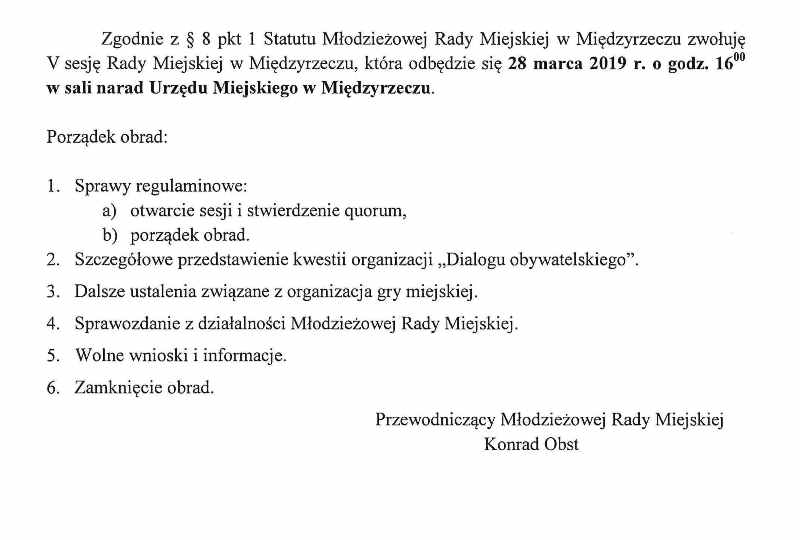 V sesja Młodzieżowej Rady Miejskiej w Międzyrzeczu