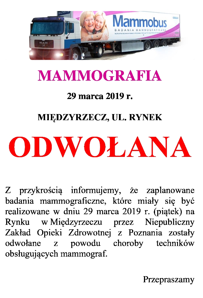 UWAGA, mamografia odwołana