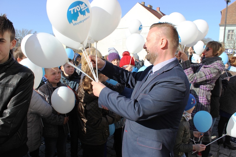 Podopieczni Specjalnego Ośrodka Szkolno-Wychowawczego, Domu Pomocy Społecznej oraz Środowiskowego Domu Samopomocy w Międzyrzeczu w towarzystwie rodziców, opiekunów i przyjaciół zatrzymali się przy ratuszu, gdzie przywitał ich burmistrz Remigiusz Lorenz.