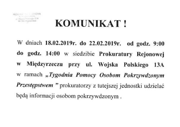 Komunikat Prokuratury Rejonowej w Międzyrzeczu