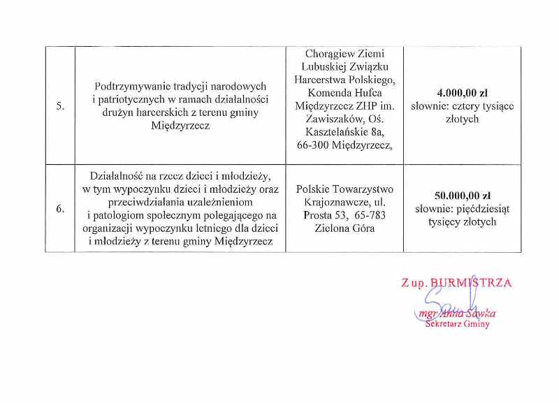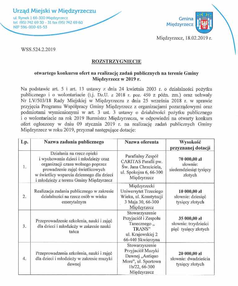 Rozstrzygnięcie otwartego konkursu ofert na realizację zadań publicznych na terenie gminy Międzyrzecz w 2019 r.