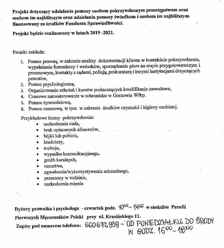 Pomoc dla osób pokrzywdzonych przestępstwem - dyżur prawnika i psychologa