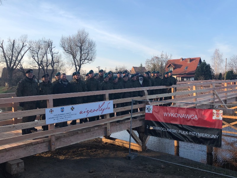 Po 14 dniach zakończyła się budowa nowej kładki w naszym mieście. Jej wykonawcą był 2. Inowrocławski Pułk Inżynieryjny. Przeprawa łączy Bulwar Jana Pawła II z ul. Winnica. 29 listopada kładkę oficjalnie otworzył burmistrz Remigiusz Lorenz, dowódca 2. Inowrocławskiego Pułku Inżynieryjnego płk Bogdan Prokop oraz dowódca 17.WBZ gen. bryg. Robert Kosowski. Burmistrz serdecznie podziękował żołnierzom za realizację tej inwestycji, ich zaangażowanie i profesjonalizm.