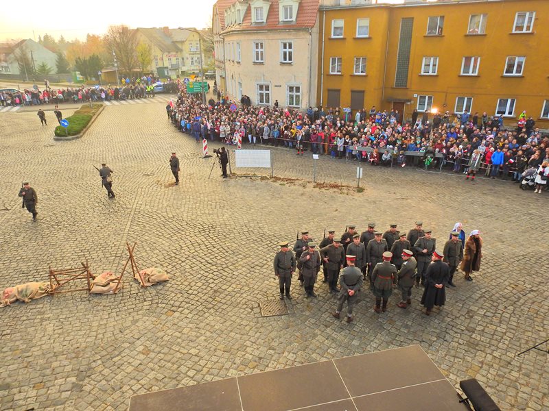11 listopada (niedziela) o godz. 14:00 odbędzie się msza św. w kościele pw. św. Jana Chrzciciela. Po mszy o godz. 15:00 ustawiamy się wszyscy w kolorowym, biało-czerwonym korowodzie, który poprowadzi nas na plac przy PKP, gdzie odbędzie się niezwykle ciekawa Inscenizacja Batalistyczno-Historyczna "Powstanie Wielkopolskie". Tuż po inscenizacji zapraszamy do wspólnego śpiewania pieśni patriotycznych oraz na pyszną, wojskową grochówkę.