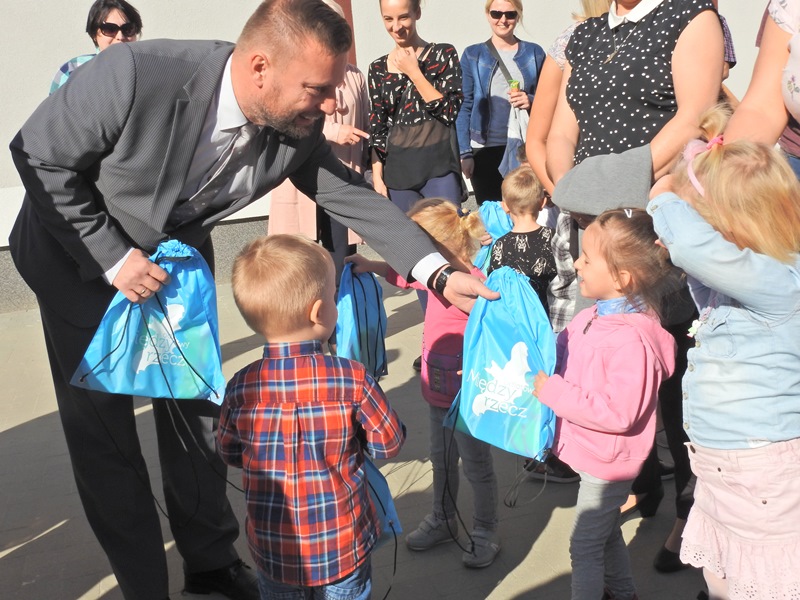 Tuż po oficjalnej części uroczystości burmistrz wręczył przedszkolakom plecaki wypełnione prezentami. Na zakończenie wszyscy mogli podziwiać występ dzieci uczęszczających do nowego przedszkola oraz występ zespołu Trans. Maluchy mogły wziąć również udział w specjalnie dla nich przygotowanych atrakcjach.