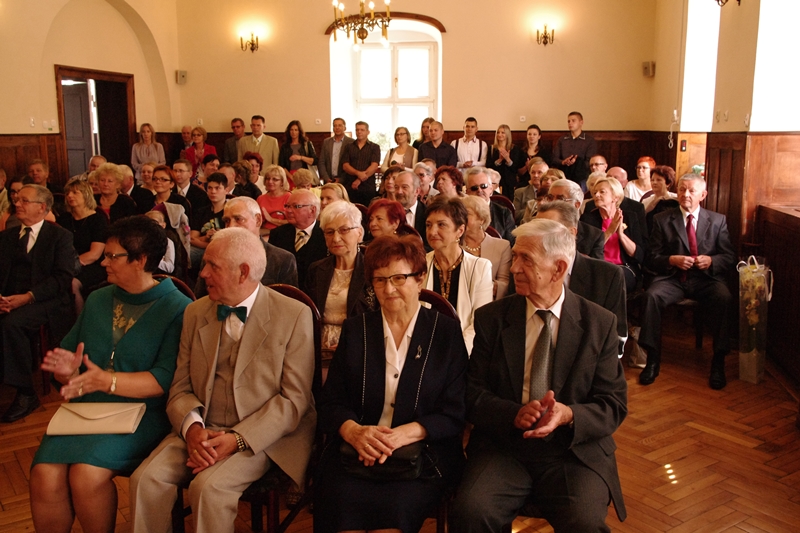 W słoneczny, sobotni poranek, 24 września br. w murach międzyrzeckiego ratusza, 11 par świętowało 50-lecie i jedna para 60-lecie pożycia małżeńskiego. Uroczystość rozpoczęła Izabela Kępińska, która powitała wszystkich dostojnych jubilatów. Głos zabrał burmistrz Remigiusz Lorenz, który pogratulował wszystkim parom długich lat wspólnego życia oraz życzył świętowania kolejnych rocznic w zdrowiu i radości. Burmistrz wręczył każdej parze medal i legitymacje za długoletnie pożycie i zaprosił do wysłuchania krótkiego koncertu dzieci i nauczycieli z Państwowej Szkoły Muzycznej I st. w Międzyrzeczu. Na zakończenie burmistrz zaprosił gości do zaśpiewania jubilatom tradycyjnego Sto lat i wzniesienia toastu za ich zdrowie.