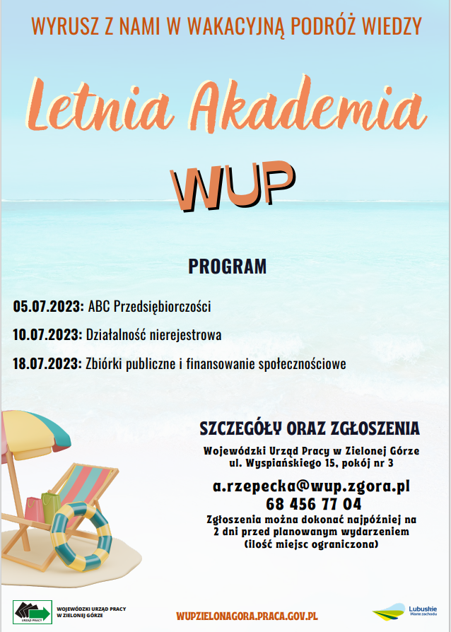 Wojewódzki Urząd Pracy w Zielonej Górze rusza z cyklem bezpłatnych szkoleń w ramach Letniej Akademii WUP.