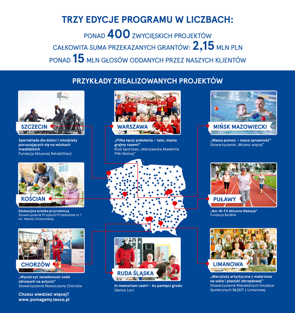 Dotychczas Tesco wsparło ponad 400 lokalnych inicjatyw, przekazując 2,15 mln złotych organizacjom społecznym.