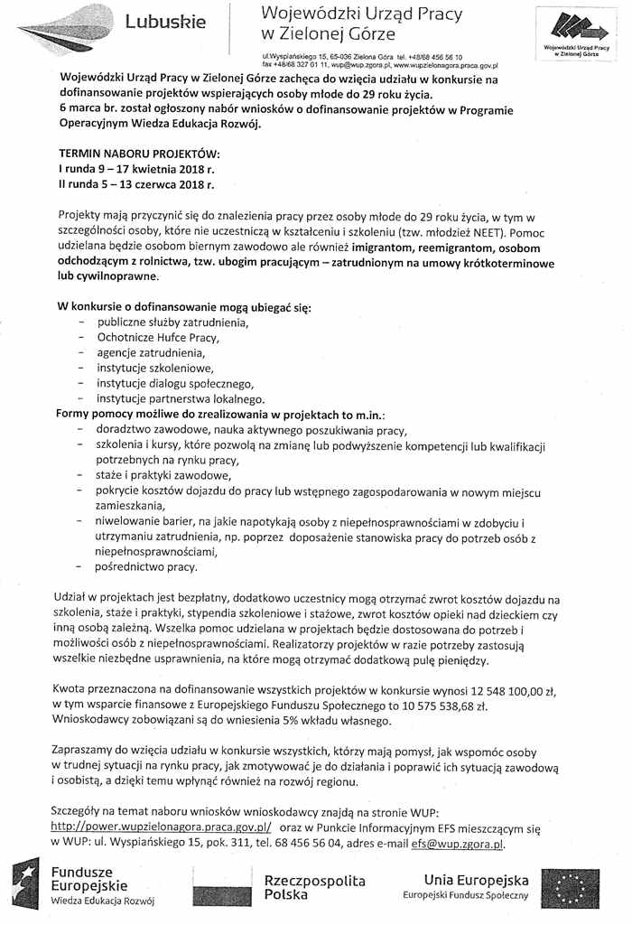 Konkurs na dofinansowanie projektów wspierających osoby młode do 29 roku życia