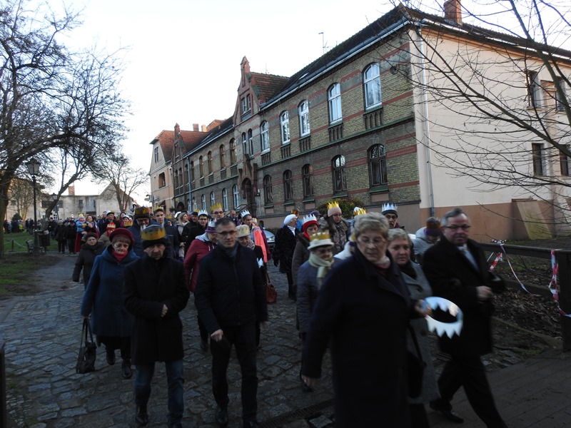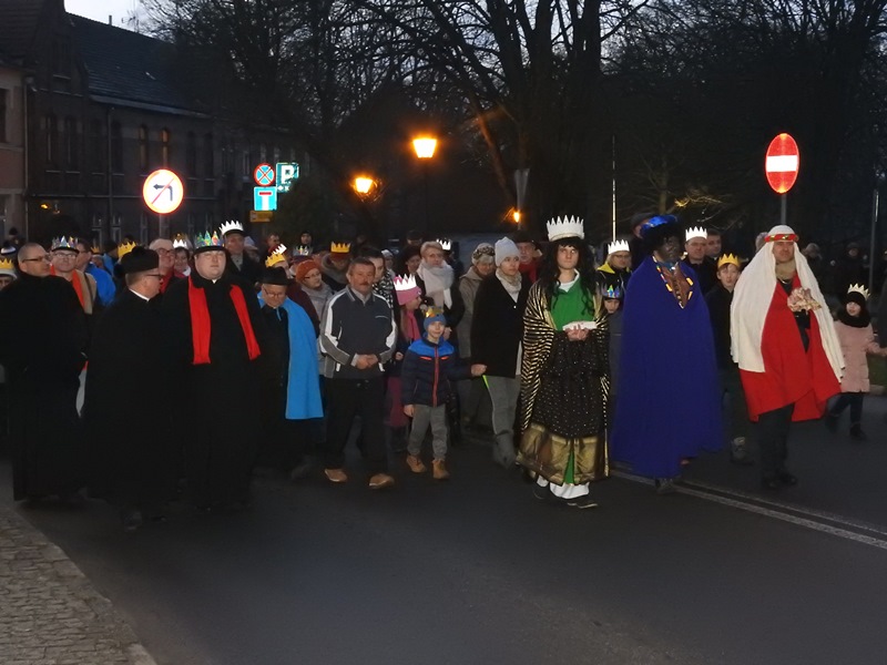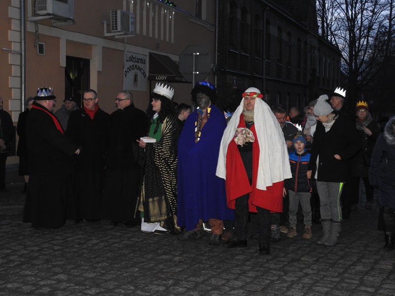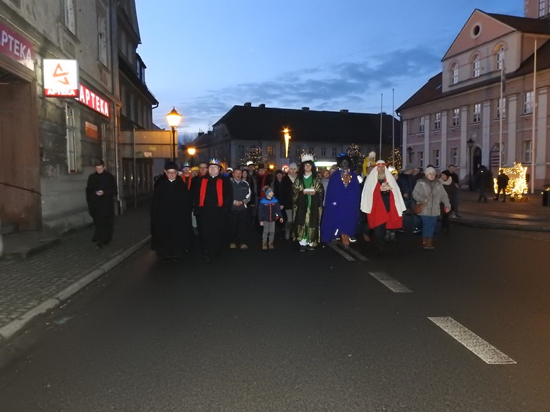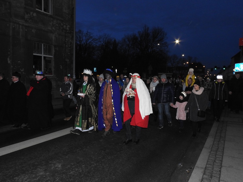 Po zakończeniu wspólnego kolędowania orszak prowadzony przez trzech króli przeszedł ulicami miasta do kościoła, gdzie odprawiona została msza św. w intencji mieszkańców.
