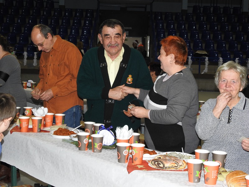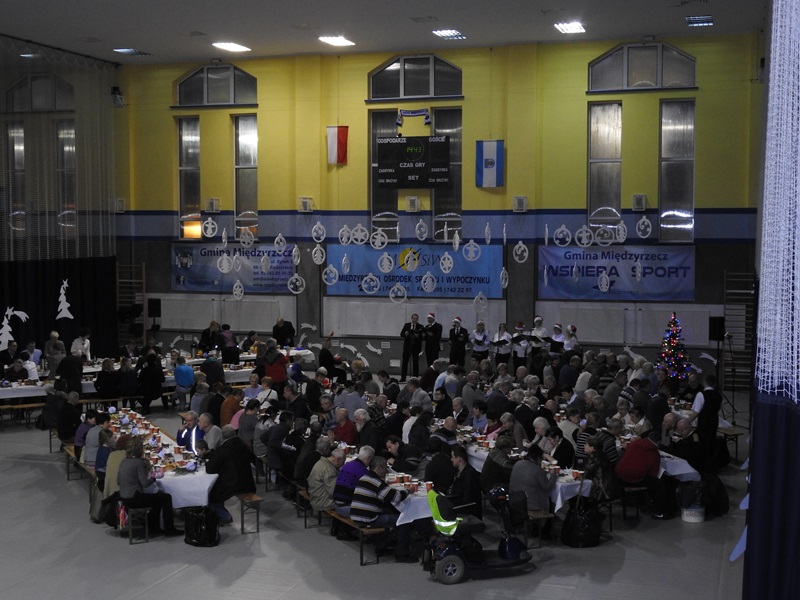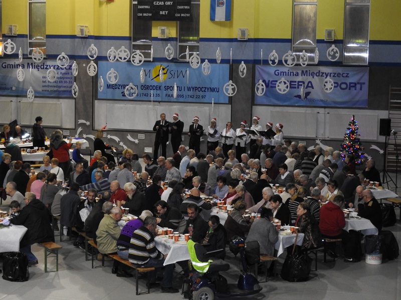 Na stołach królowały tradycyjne, świąteczne potrawy, pierogi z kapustą i grzybami, karp, kluski z makiem. Prawdziwe święta nie mogą się odbyć bez wizyty świętego Mikołaja, który również tego dnia wraz ze śnieżynkami przybył na międzyrzecką halę, by obdarować wszystkich słodkościami.