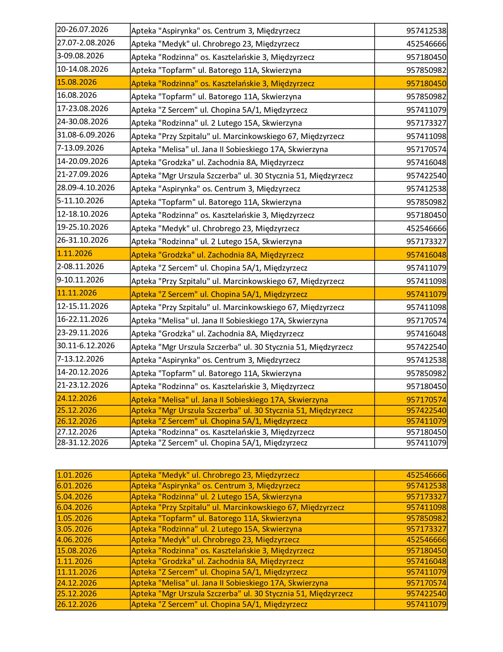Dyżury aptek w 2026 roku