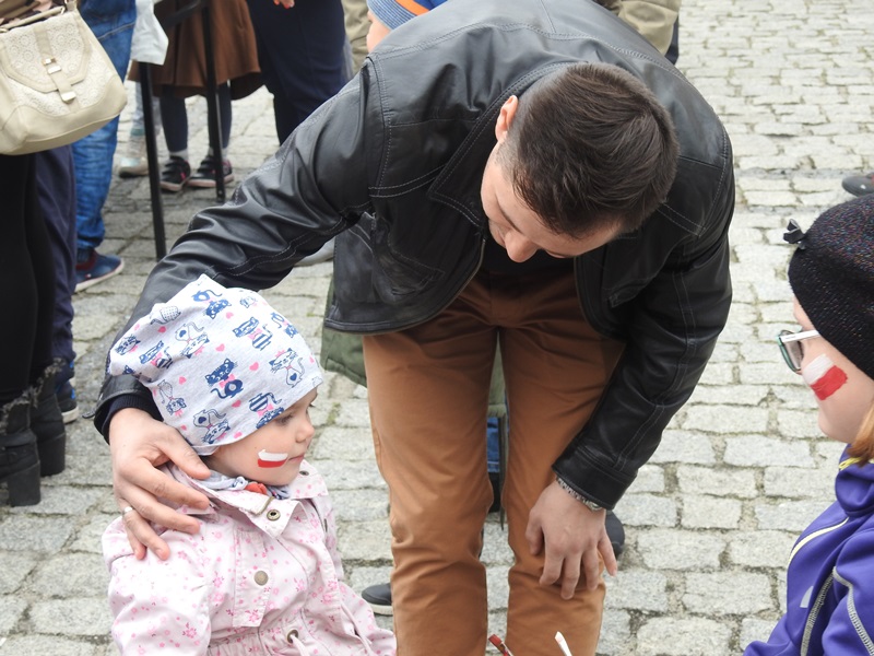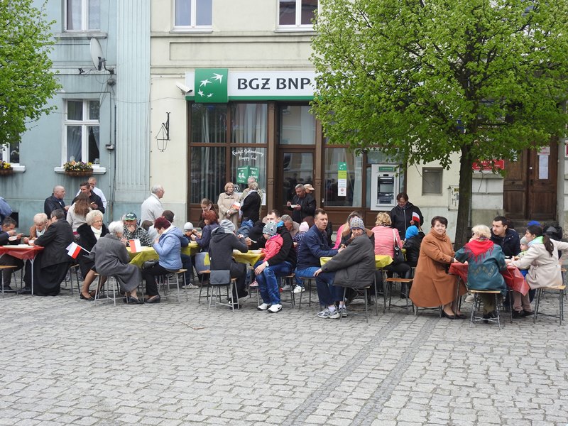 Tuż po oficjalnych obchodach rozpoczęło się majówkowe świętowanie na placu wokoło ratusza. Z krótkim programem artystycznym zaprezentowała się Orkiestra Dęta z Grochowa oraz dzieci z międzyrzeckiego chóru Piccolo. 17. Wielkopolska Brygada Zmechanizowana przygotowała szereg atrakcji, można było podziwiać rosomaki – w tym rosomaka medycznego, hibneryt i quady. Najmłodsi wspinali się na parku linowym, czekał na nich również „Cyklop”, na którym mogli potrenować celne oko. Wraz z pracownią artystyczną Dworzec Tworzec rodzice wraz z dziećmi mogli stworzyć swoją własną flagę z międzyrzeckim akcentem. Prawdziwym rarytasem okazała się wojskowa grochówka, która rozeszła się jak przysłowiowe ciepłe bułeczki. Dzięki wystawie, której pomysłodawcą był radny Andrzej Chmielewski, starsi mieszkańcy miasta mogli powspominać lata 80., kiedy to przez Międzyrzecz przetoczyła się fala strajków, związanych z pomysłem lokalizacji w Międzyrzeckim Rejonie Umocnionym składowiska odpadów atomowych.