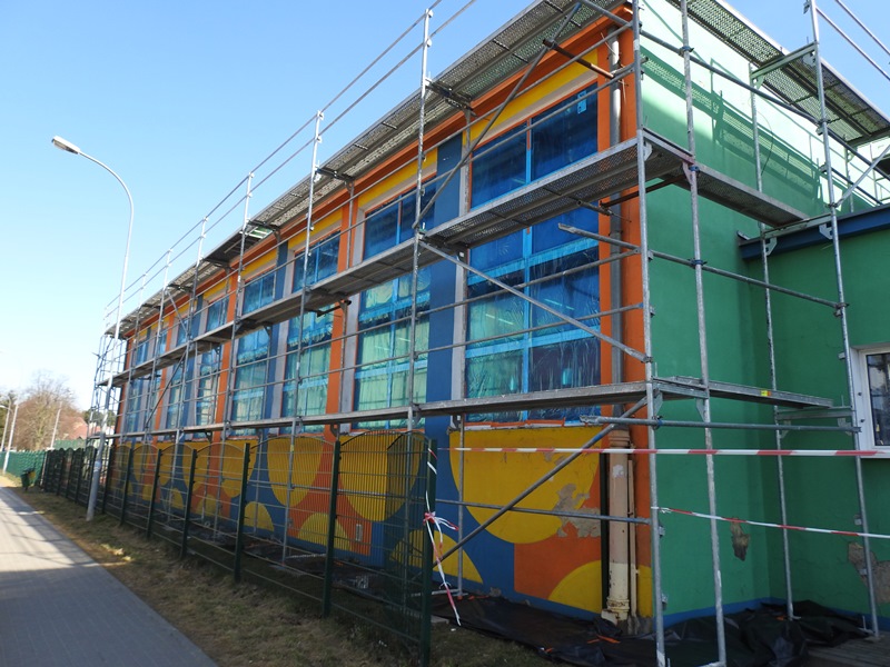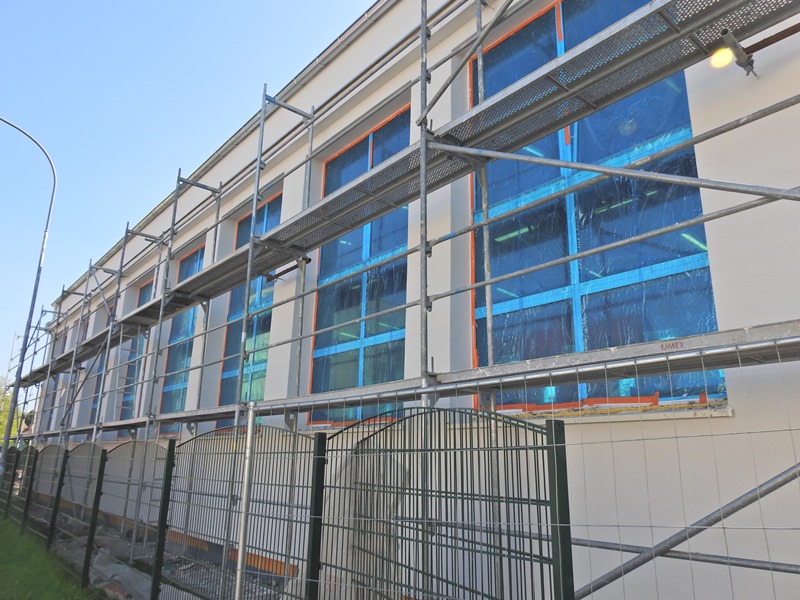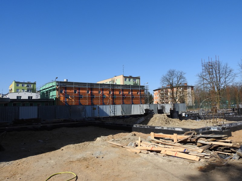 Zakończono prace związane z wykonaniem docieplenia oraz malowania ścian sali gimnastycznej i łącznika. Obecnie trwają prace związane z wykonaniem docieplenia ścian budynku głównego szkoły. Ponadto przystąpiono do demontażu grzejników wewnątrz całego obiektu w celu ich wymiany na nowe.