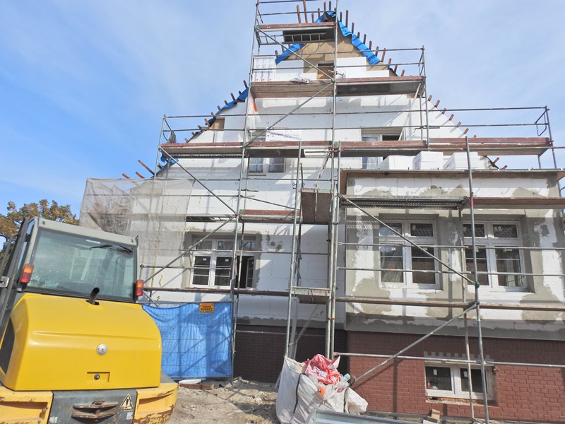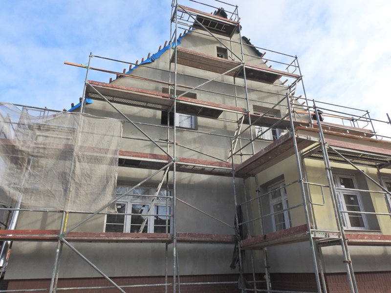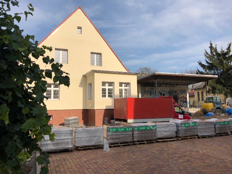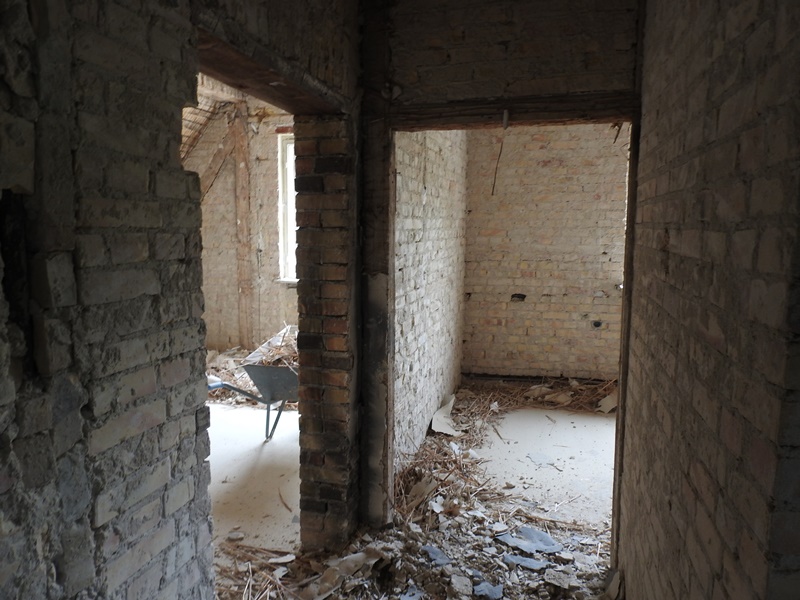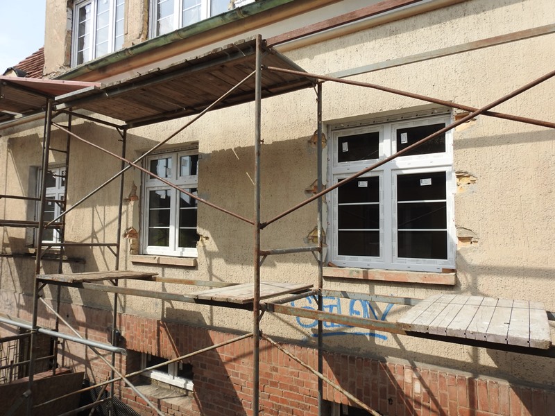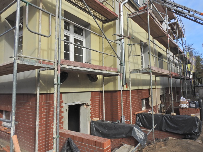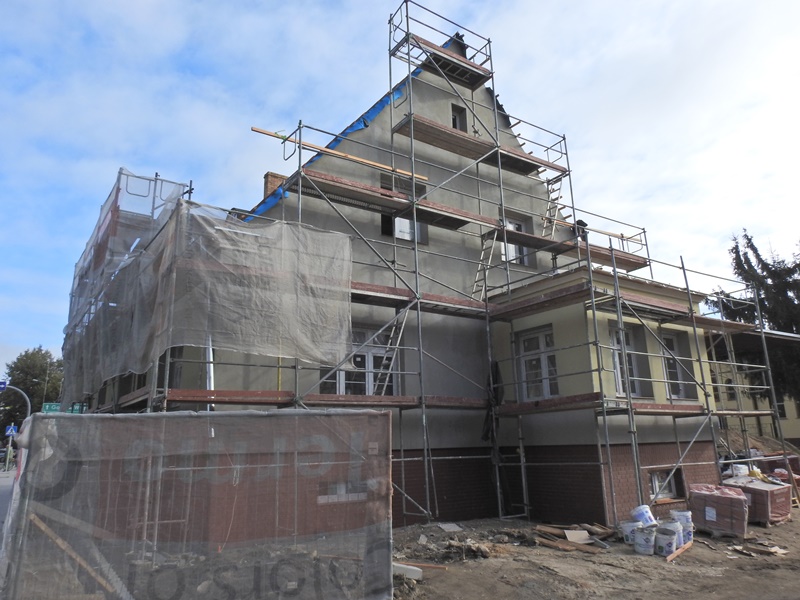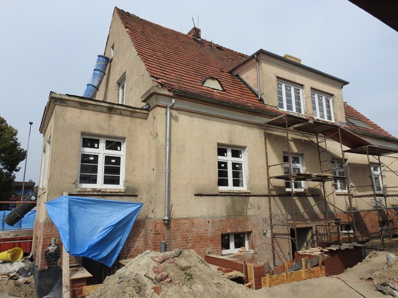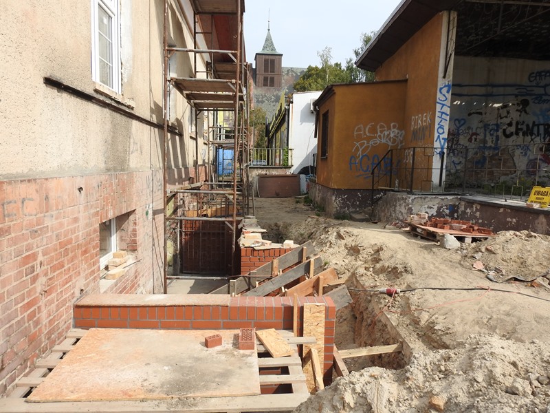 W wyniku rozstrzygnięcia przetargu nieograniczonego podpisano umowę z Wykonawcą na realizacje przedmiotowej inwestycji. Obecnie wykonano wycinkę drzew, zdemontowano stolarkę okienną. Dokonano odkrycia ścian fundamentowych w celu wykonania izolacji przeciwwilgociowej. Obecnie przystąpiono do robót ogólnobudowlanych wewnątrz budynku.