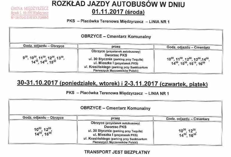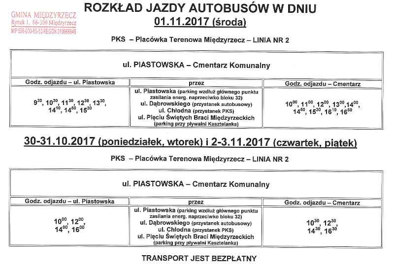 Rozkład jazdy autobusów na Cmentarz Komunalny w dniach 30-31.10 i 1-3.11.2017