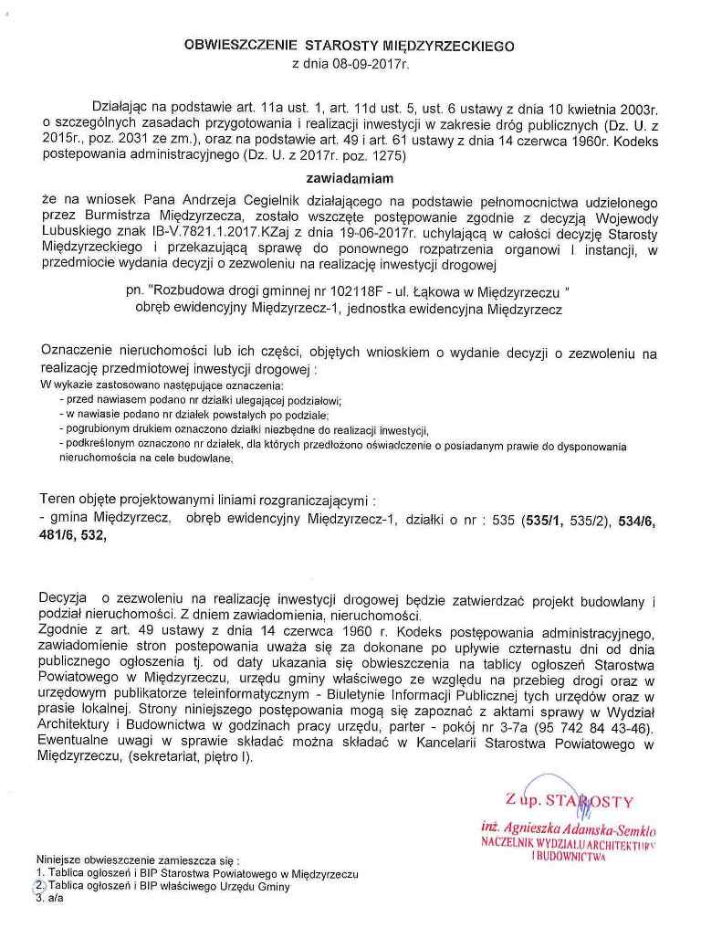 Obwieszczenie Starosty Międzyrzeckiego