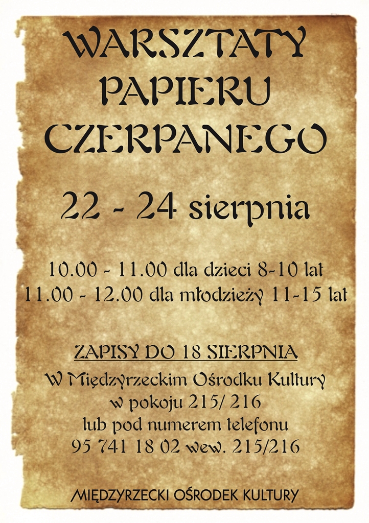 Zapraszamy wszystkie dzieci na sierpniowe warsztaty do Międzyrzeckiego Ośrodka Kultury