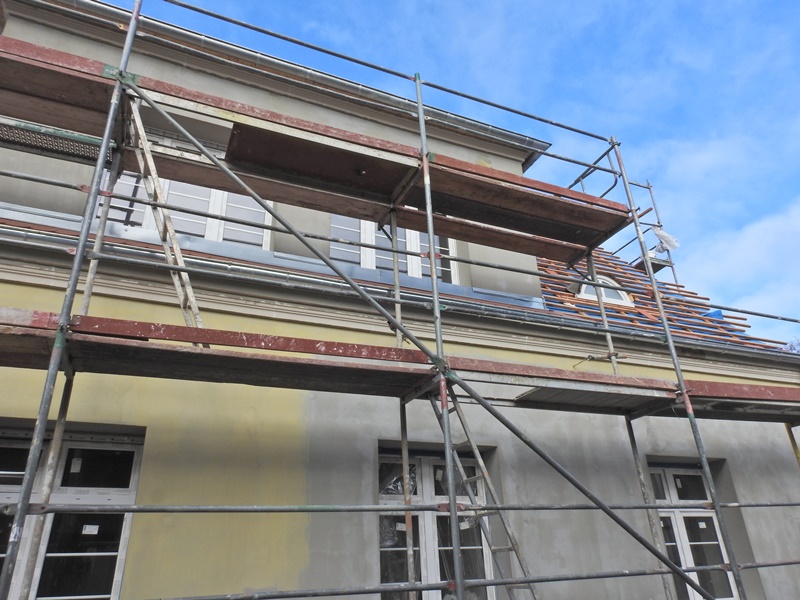 W wyniku rozstrzygnięcia przetargu nieograniczonego podpisano umowę z Wykonawcą na realizacje przedmiotowej inwestycji. Obecnie wykonano wycinkę drzew, zdemontowano stolarkę okienną. Dokonano odkrycia ścian fundamentowych w celu wykonania izolacji przeciwwilgociowej. Obecnie przystąpiono do robót ogólnobudowlanych wewnątrz budynku.