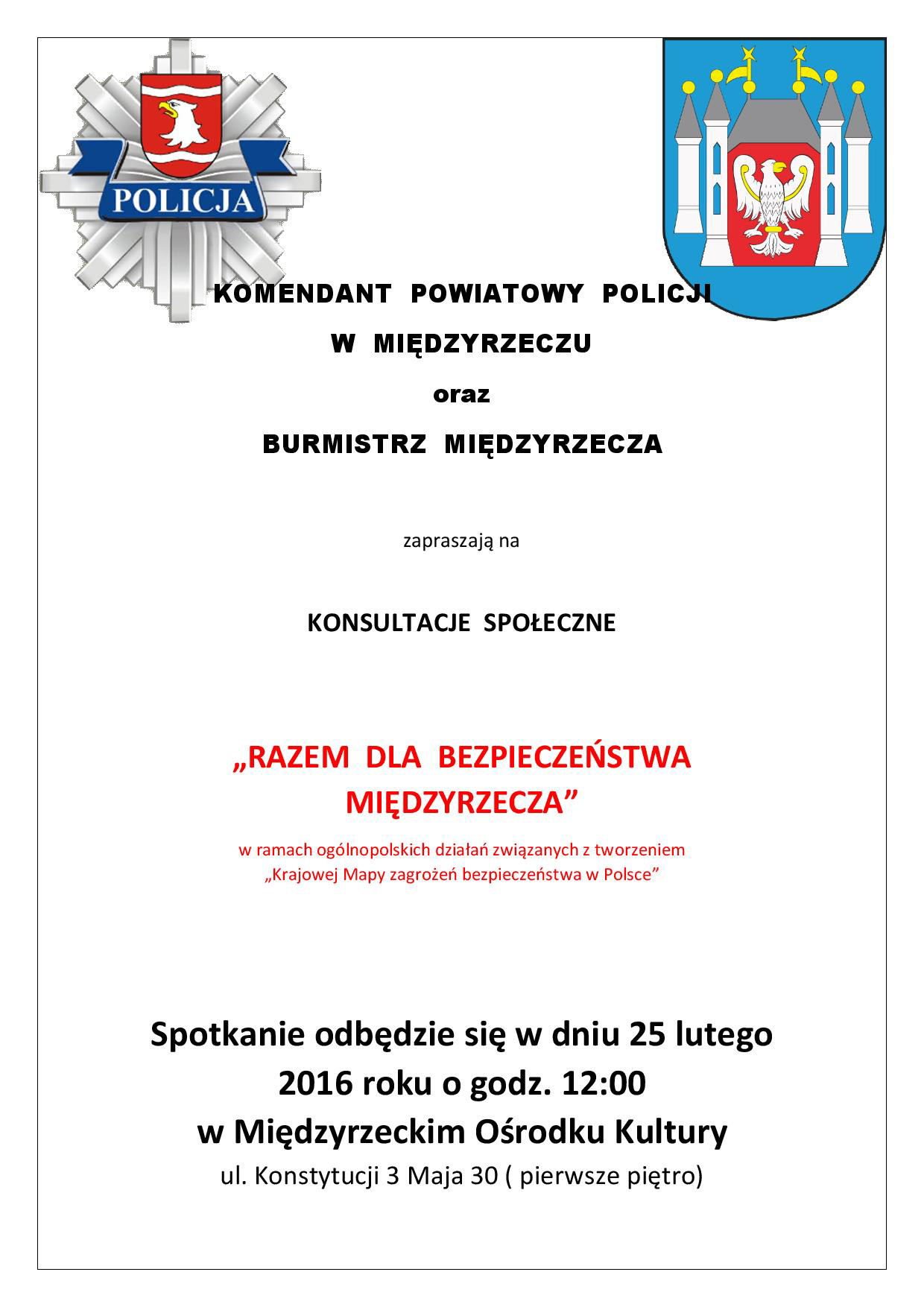 Zapraszany na konsultacje społeczne "Razem dla bezpieczeństwa Międzyrzecza"