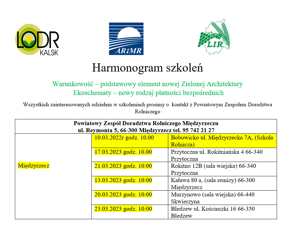 Harmonogram szkoleń w powiecie międzyrzeckim: