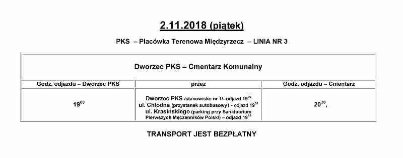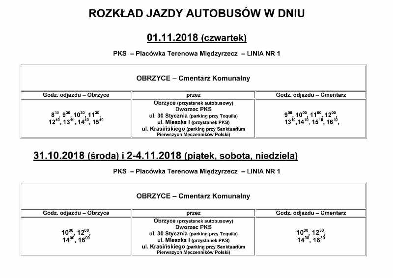 Rozkład jazdy autobusów w dniach 31.10-4.11.2018