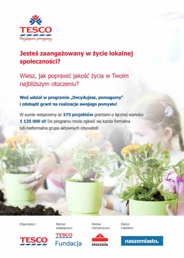 „Decydujesz, pomagamy” to program wspierający lokalne społeczności poprzez finansowanie inicjatyw na rzecz najbliższego otoczenia. Dotychczas Tesco wsparło 815 lokalnych inicjatyw, przekazując ponad 3 mln złotych organizacjom społecznym.