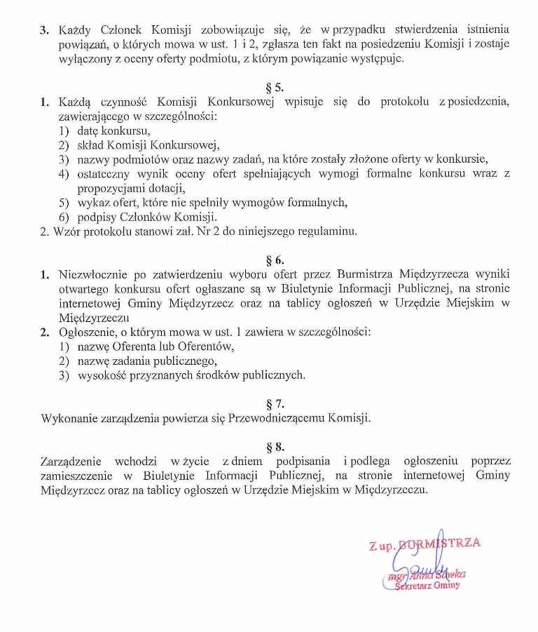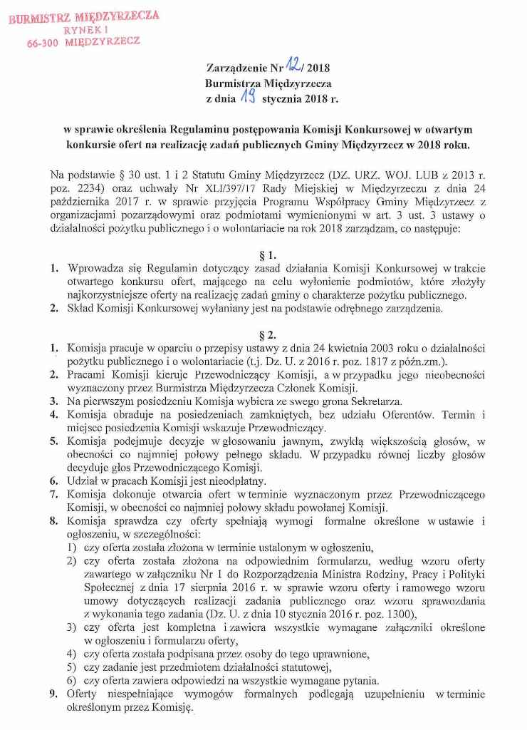 Zarządzenie w sprawie określenia regulaminu postępowania komisji konkursowej w otwartym konkursie ofert na realizację zadań publicznych gminy Międzyrzecz w 2018 r.