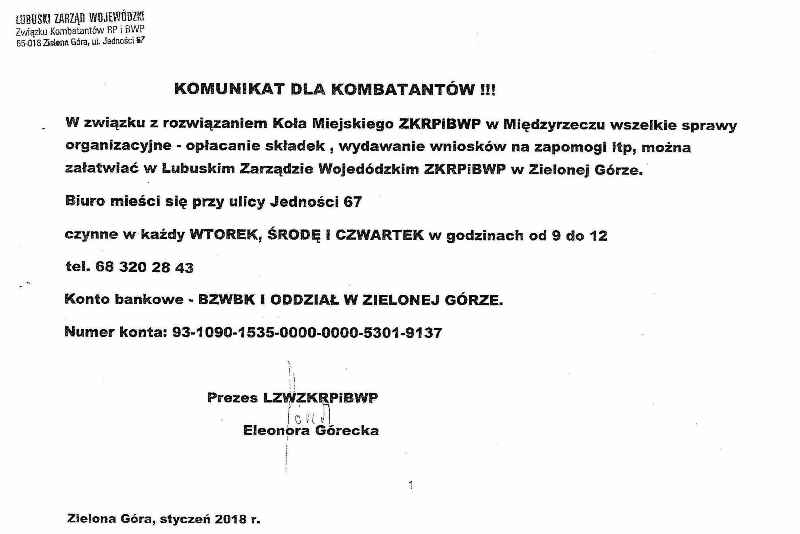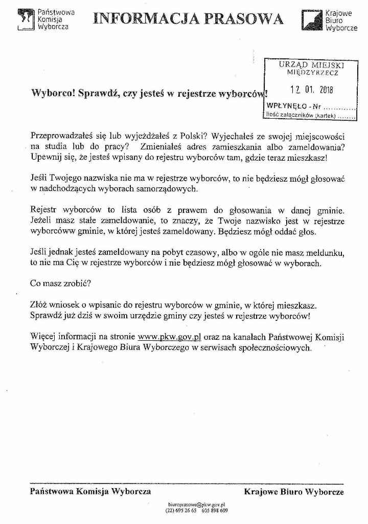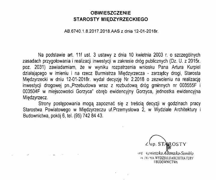 Międzyrzecz, dnia 25 stycznia 2018 r.