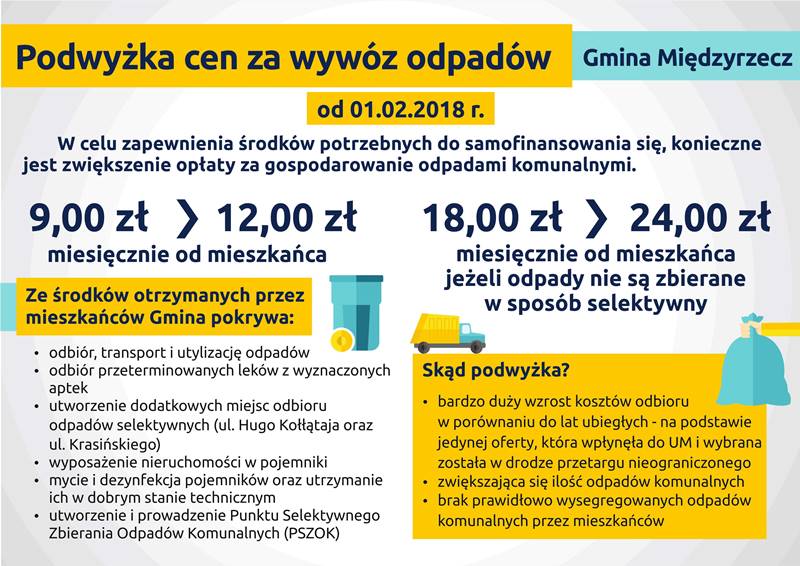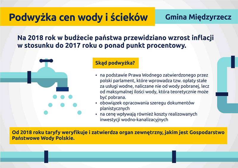 Infografiki nt. podyżki cen wody i ścieków oraz wywozu odpadów. Informacja o spotkaniu