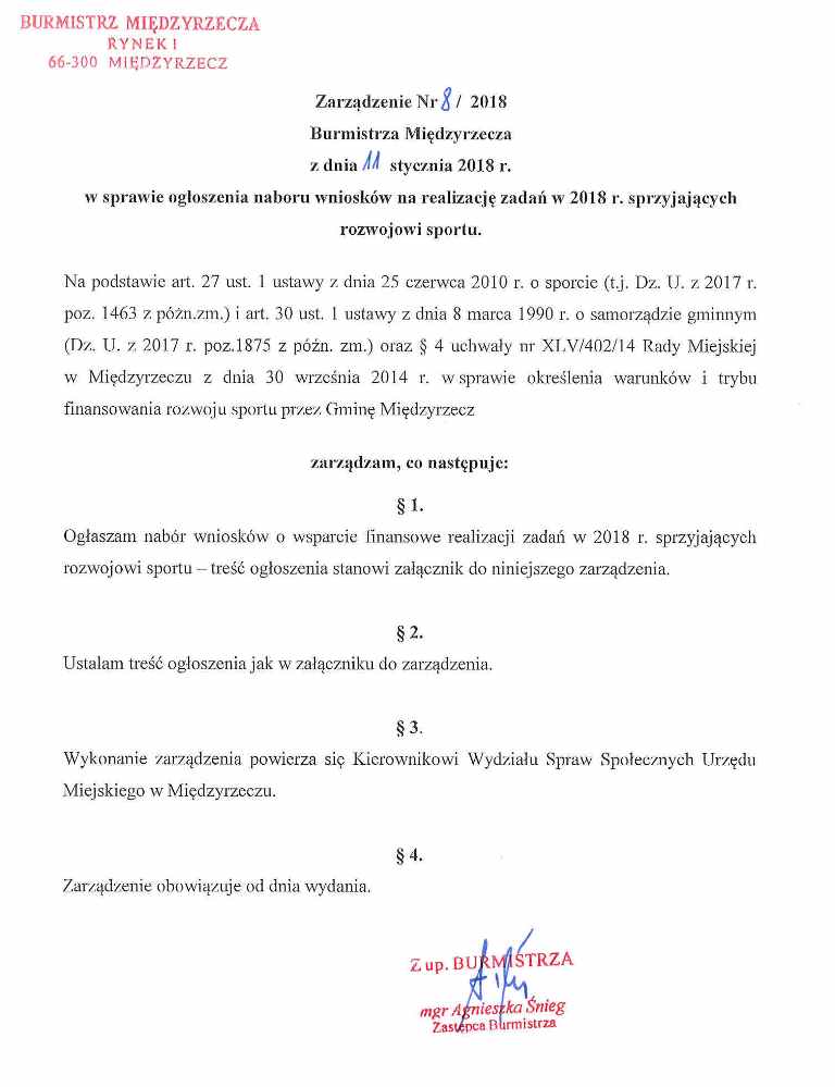 Ogłoszenie naboru wniosków na realizacje zadań sprzyjających rozwojowi sportu w 2018 r.
