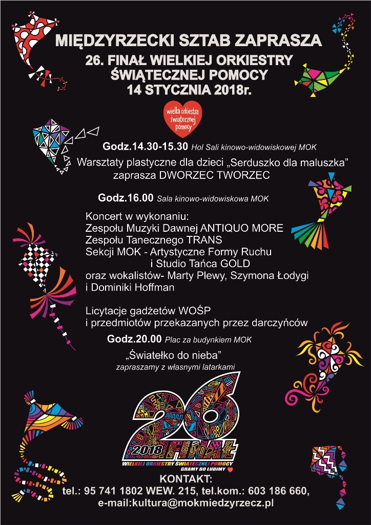 W najbliższą niedzielę Międzyrzecki Sztab zaprasza na 26. Finał Wielkiej Orkiesrty Świątecznej Pomocy. Będą występy młodych międzyrzeczan, lokalnych zespołów oraz warsztaty plastyczne dla dzieci. Przybywajcie tłumnie!