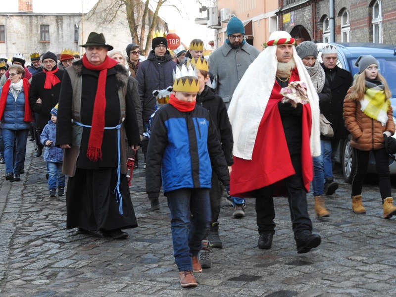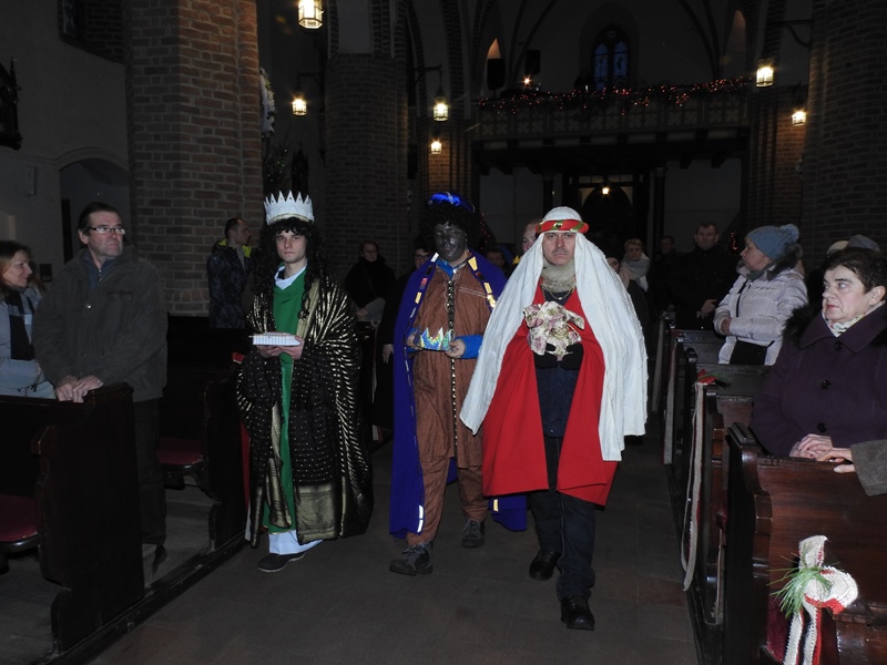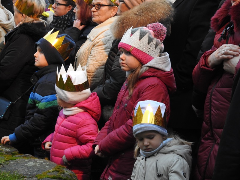 Po zakończeniu wspólnego kolędowania orszak prowadzony przez trzech króli przeszedł ulicami miasta do kościoła, gdzie odprawiona została msza św. w intencji mieszkańców.