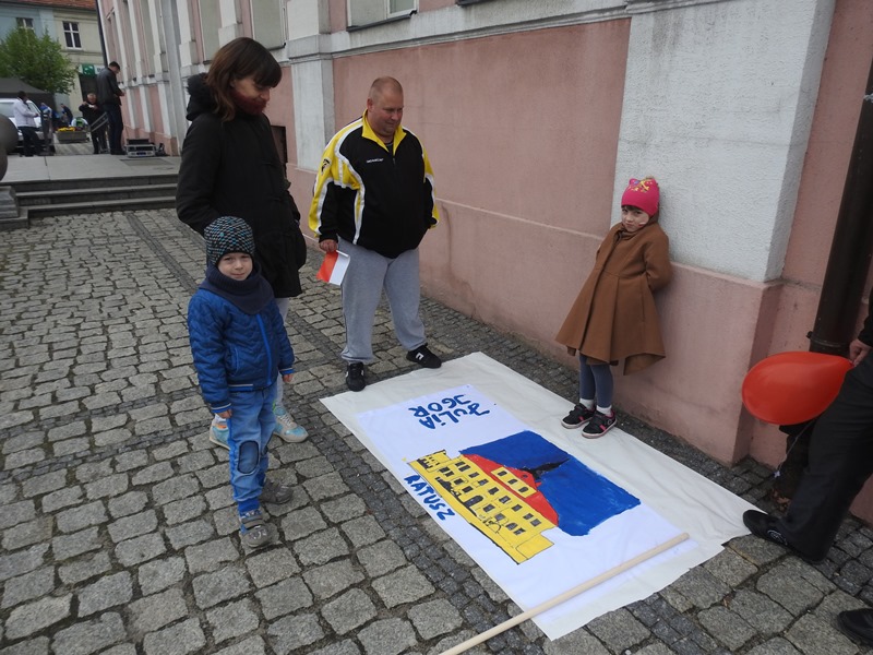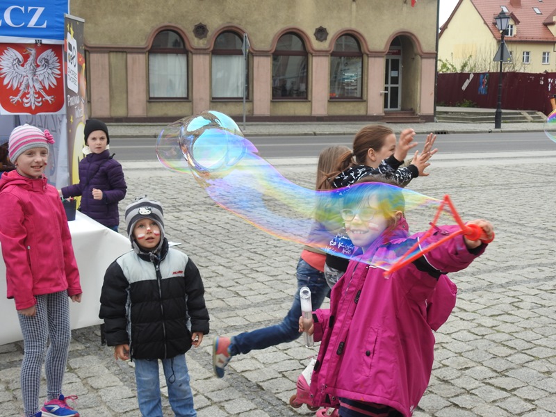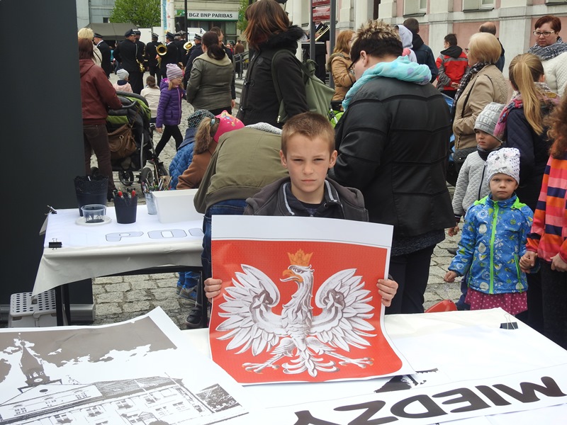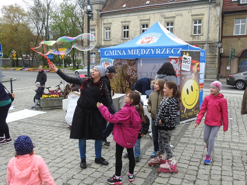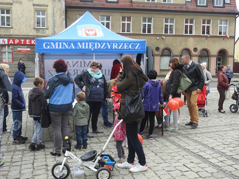 Tuż po oficjalnych obchodach rozpoczęło się majówkowe świętowanie na placu wokoło ratusza. Z krótkim programem artystycznym zaprezentowała się Orkiestra Dęta z Grochowa oraz dzieci z międzyrzeckiego chóru Piccolo. 17. Wielkopolska Brygada Zmechanizowana przygotowała szereg atrakcji, można było podziwiać rosomaki – w tym rosomaka medycznego, hibneryt i quady. Najmłodsi wspinali się na parku linowym, czekał na nich również „Cyklop”, na którym mogli potrenować celne oko. Wraz z pracownią artystyczną Dworzec Tworzec rodzice wraz z dziećmi mogli stworzyć swoją własną flagę z międzyrzeckim akcentem. Prawdziwym rarytasem okazała się wojskowa grochówka, która rozeszła się jak przysłowiowe ciepłe bułeczki. Dzięki wystawie, której pomysłodawcą był radny Andrzej Chmielewski, starsi mieszkańcy miasta mogli powspominać lata 80., kiedy to przez Międzyrzecz przetoczyła się fala strajków, związanych z pomysłem lokalizacji w Międzyrzeckim Rejonie Umocnionym składowiska odpadów atomowych.