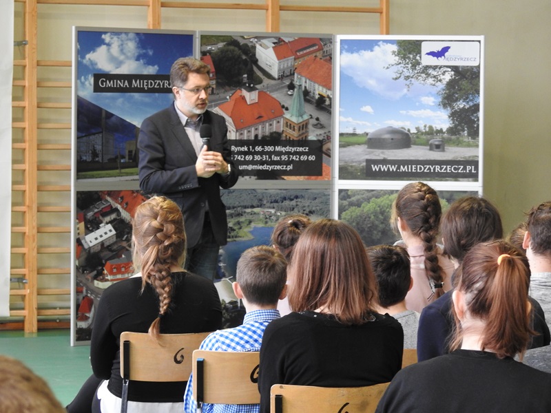 Z inicjatywy Burmistrza Międzyrzecza Remigiusza Lorenza dnia 7 marca 2017 roku zostało zorganizowane spotkanie dotyczące Wisławy Szymborskiej. O poetce opowiadał literaturoznawca, autor książek i jej wieloletni sekretarz Michał Rusinek. Dzięki uprzejmości dyrektor Gimnazjum nr 1 Joanny Obrębskiej-Spychały spotkanie odbyło się w siedzibie gimnazjum. Głównym adresatem byli uczniowie międzyrzeckich szkół, którzy należą do kół humanistycznych, są finalistami i laureatami konkursów polonistycznych i recytatorskich. Zaproszenie przyjęli także nauczyciele poloniści oraz przedstawiciele lokalnych instytucji zajmujących się kulturą. W swoim wykładzie Pan Rusinek przedstawił kilka anegdot z życia Szymborskiej, opowiedział o jej twórczości, przez co przybliżył słuchaczom postać słynnej noblistki. Podczas spotkania można było nabyć książki autorstwa Michała Rusinka oraz zdobyć autografy.