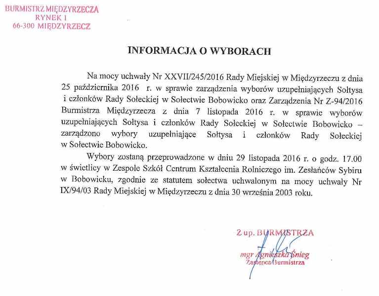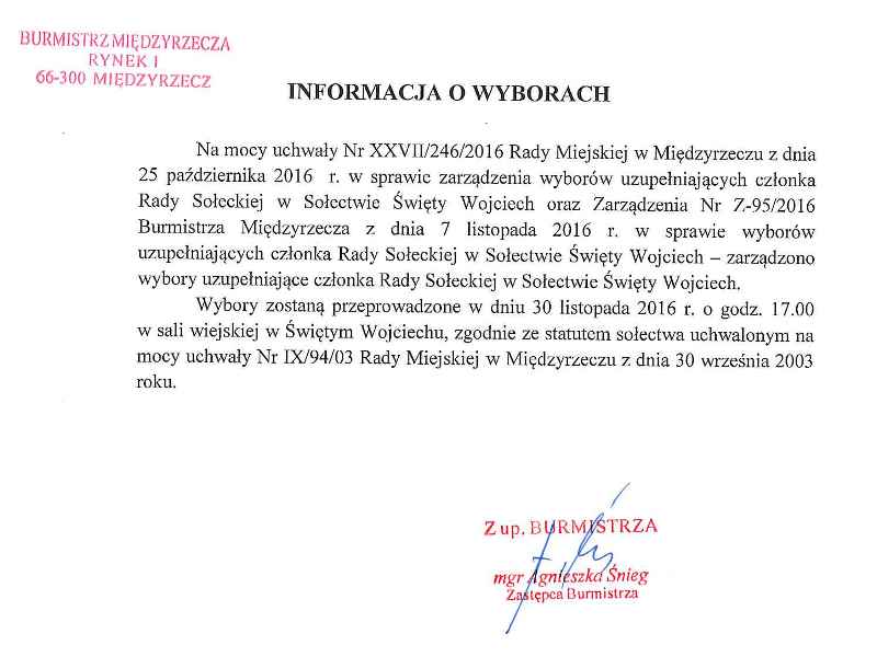 Wybory uzupełniające do Rady Sołeckiej w sołectwie Święty Wojciech oraz wybory sołtysa i członków Rady Sołeckiej w Bobowicku