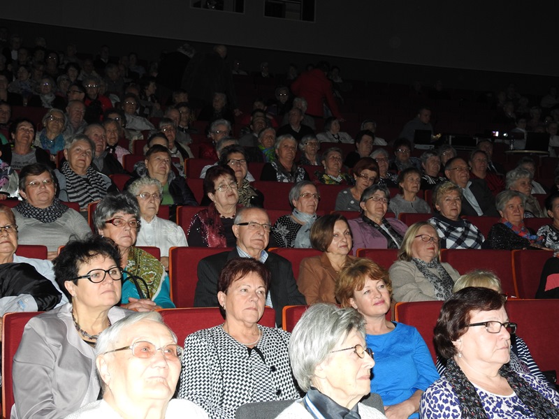 10 października br. w ramach XVIII Lubuskiego Tygodnia Seniora, odbył się Gminny Dzień Seniora. To niezwykłe - i dodajmy pierwsze takie w historii – wydarzenie, zgromadziło w murach Międzyrzeckiego Ośrodka Kultury tłumy seniorów. Powitał ich gospodarz uroczystości burmistrz Remigiusz Lorenz wraz z przewodniczącą Rady Miejskiej Marią Kijak. Burmistrz zaznaczył jak nieocenioną rolę pełnią seniorzy w naszym życiu, zachęcił do wspólnego świętowania i życzył wszystkim wspaniałym seniorom wiele radości i zdrowia. Uroczystość swoim patronatem objął starosta Grzegorz Gabryelski, w imieniu którego głos zabrała członek zarządu powiatu Zofia Plewa. Rozpoczynając świętowanie burmistrz wraz z przewodniczącą Rady Miejskiej, wręczył przedstawicielom seniorów Wacławie Kuczyńskiej i Elżbiecie Jankowskiej symboliczny klucz do miasta. Kolejnym punktem uroczystości był panel bezpieczny senior, podczas którego przedstawiciele Komendy Powiatowej Policji przestrzegali przed zagrożeniami, jakie czyhają na starsze osoby. Pracownicy banku BGŻ BNP Paribas przekazali garść istotnych informacji nt. bezpiecznej bankowości. Miłym przerywnikiem były występy artystyczne młodzieży i dzieci ze Studia Piosenki i sekcji Tańca Towarzyskiego działających przy MOK oraz wesoły występ maluszków z Przedszkola nr 1 „Pod Jarzębinką”. Dzieci wręczyły każdemu seniorowi kolorowe kwiaty, które specjalne na tę okazję wykonane zostały przez podopiecznych Środowiskowego Domu Samopomocy i Domu Pomocy Społecznej w Międzyrzeczu. Podczas kolejnego panelu, kierownik OPS Jolanta Górna opowiedziała o – jak ważnej dla każdego seniora - kopercie życia. W holu kina swoją ofertę prezentowały liczne stoiska, z którymi każdy uczestnik mógł się zapoznać, porozmawiać z ich przedstawicielami i wysłuchać wielu cennych porad. Seniorzy mieli okazję wysłuchać występu „Kęszyczanek” oraz zobaczyć francuską komedię „Facet na miarę”. Słodkim akcentem na zakończenie był tort, upieczony specjalnie z okazji Gminnego Dnia Seniora. Wszyscy zgromadzeni seniorzy nie kryli swojego zachwycenia z tego wyjątkowego wydarzenia i zgodnie podkreślali, że już nie mogą się doczekać przyszłorocznych obchodów.
