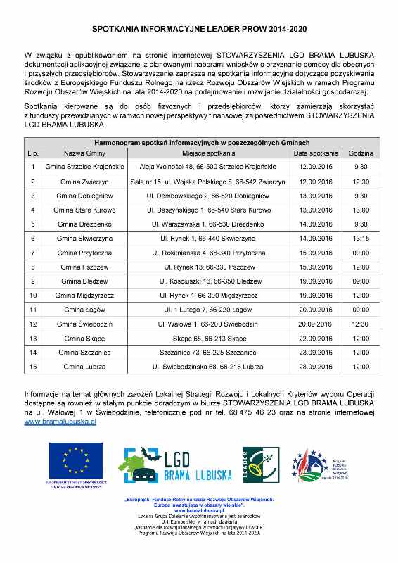SPOTKANIA INFORMACYJNE LEADER PROW 2014-2020.
