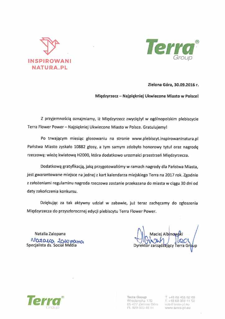 Wygraliśmy! Międzyrzecz najpiękniej ukwieconym miastem w Polsce! Dziękujemy za Wasze głosy! Pokazaliście, że potraficie się zmobilizować i osiągnąć wspólny cel! Brawo!