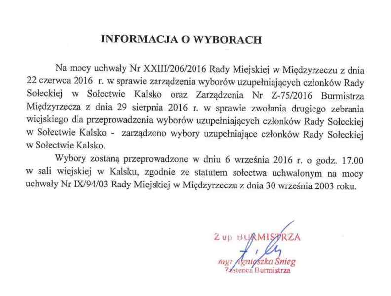 Wybory uzupełniające do Rady Sołeckiej w Kalsku