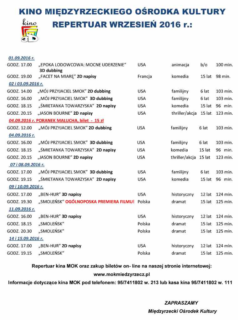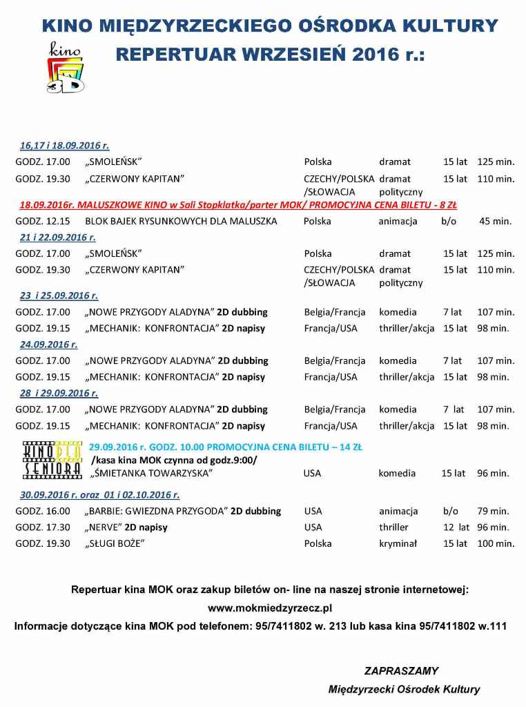 Repertuar kina MOK na wrzesień 2016