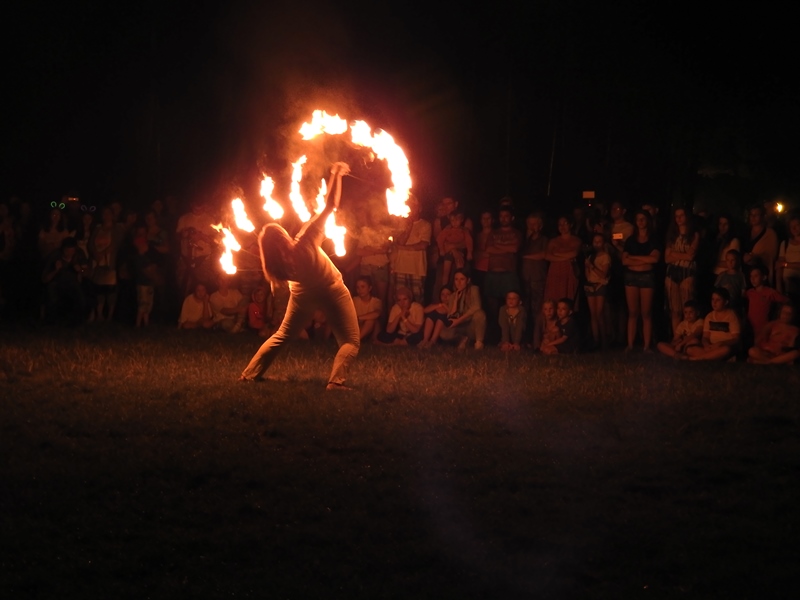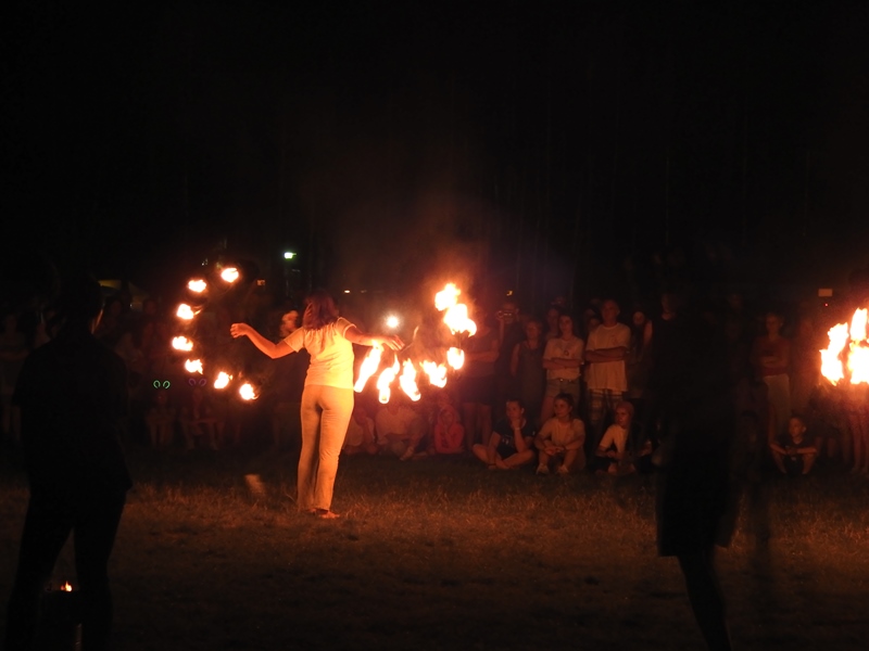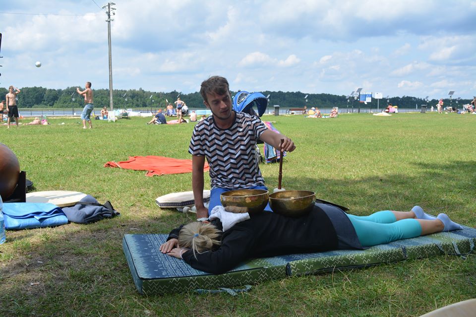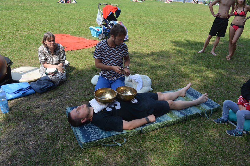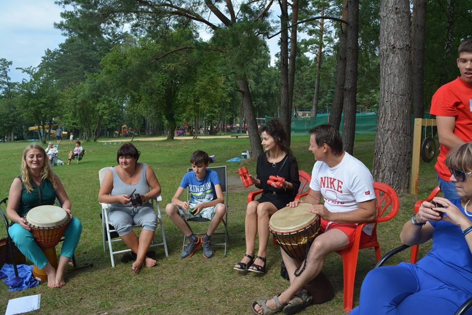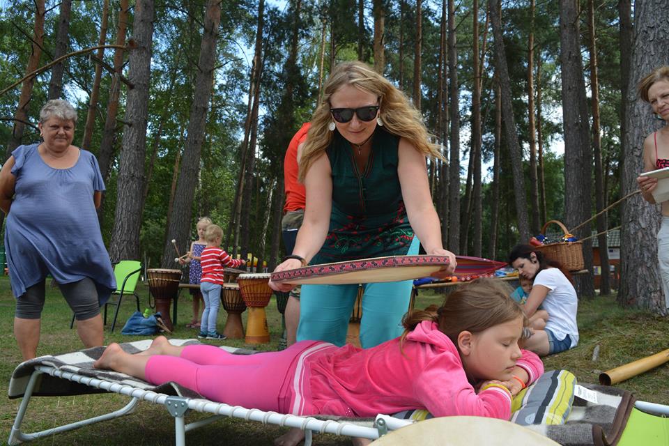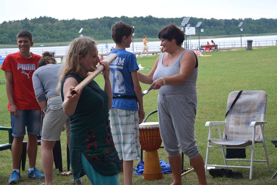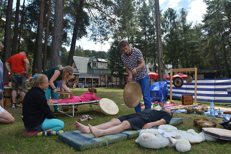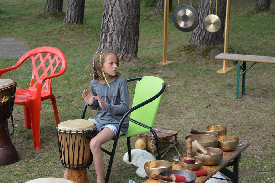 Kolejny weekend wakacji obfitował w liczne atrakcje dla dzieci, ale również i dla dorosłych na Ośrodku Wypoczynkowym Głębokie. Sobota była dniem spotkania w rytmie przyrody. Atrakcji nie zabrakło dla nikogo, kto chciał poczuć harmonię z otaczającym lasem, wiatrem, wodą. Odbyły się indywidualne masaże gongiem, misami wg. metody niemieckiego fizyka Petera Hessa, relaksacja muzykoterapeutyczna, w trakcie której można było usłyszeć misy tybetańskie, melodyjną fujarę salaśnicką, afrykańską korę, shruti box z Indii, bębny oceaniczne, gongi i wiele innych, na co dzień niespotykanych instrumentów. Z ogromnym aplauzem przyjęte zostały także aktywne zajęcia, podczas których wypoczywający na ośrodku grali na bębnach djembe i drobnych instrumentach perkusyjnych, takich jak różnego rodzaju guairach, shaikerach, kabasach, marakasach. Integrując się z otaczającą przyrodą dzieci wspólnie z dorosłymi wygrywały melodyjne rytmy, powtarzały za prowadzącymi wesołe okrzyki i śpiewy. Przebojem okazała się piosenka: „Pan dzięcioł w drzewo stuka, stuka, stuka w sosenkę”, a także afrykańska piosenka chwaląca matkę ziemię. Magiczną chwilą była wspólna gra i komunikacja za pomocą mis tybetańskich. Zajęcia poprowadzili muzykoterapeuci z Międzyrzecza i Żagania.