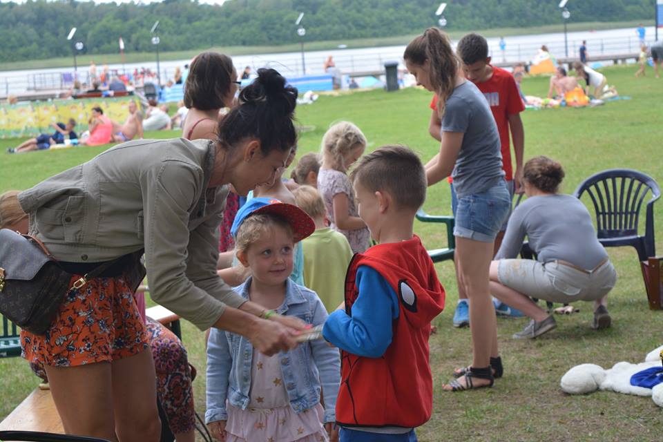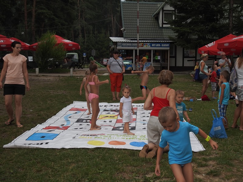 Niedziela to kolejny dzień zabawy dla dzieci na Ośrodku Wypoczynkowym Głębokie. Tym razem maluchy miały do dyspozycji mega gry planszowe. Wspaniale bawiły się skacząc na Twisterze i Wężownicy oraz rozciągając swoje ciało na Połamańcu. A na odpoczynek i dobry sen, sekretarz gminy Anna Sawka przeczytała dzieciom - znakomicie przez nich znane - baśnie braci Grimm, których maluchy słuchały z dużym zaciekawieniem.
